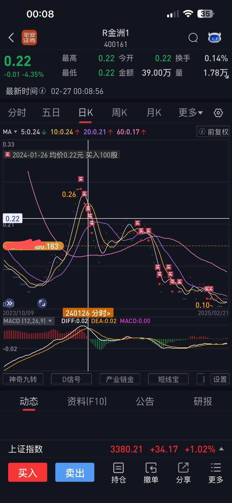 $R金洲1(SZ400161)$ 每次补一百股终究还是没把股价拉起来,尽力了