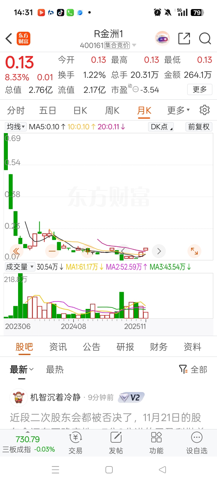$R金洲1(SZ400161)$ 多么漂亮的月线!