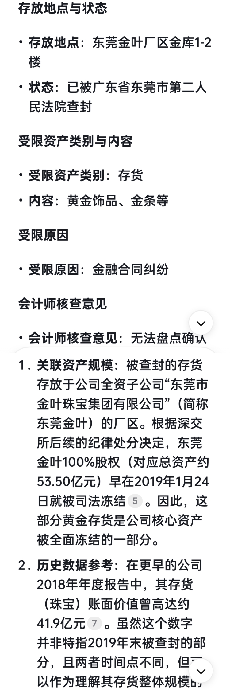 2019 年 3 月 7 日:广东省东莞市第二人民法院出具(2019)粤 1972 财保 43 号文书,对东莞黄金生产基地相关黄金资产实施首次司法查封,为早期债权人保全动作。