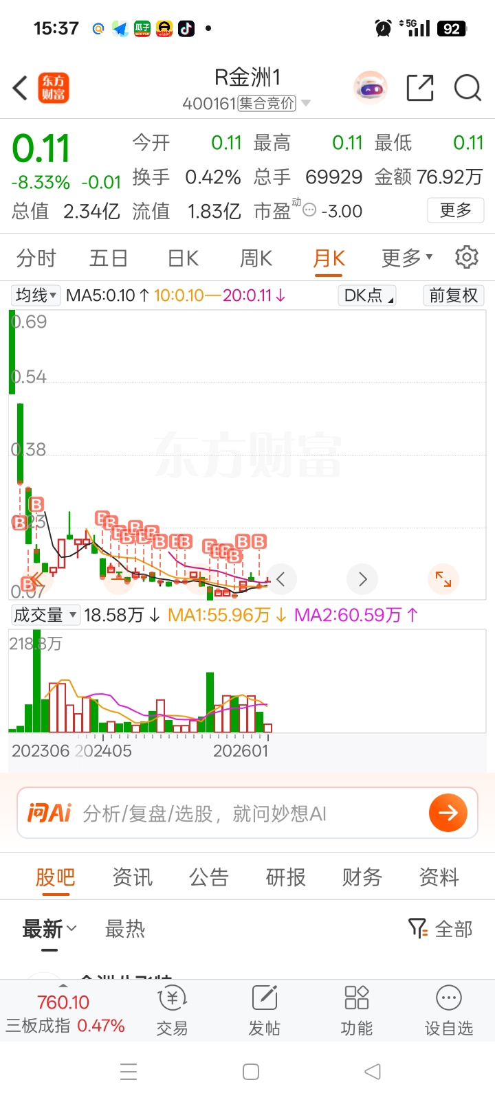 $R金洲1(SZ400161)$ 月线尾巴是不翘起来了!