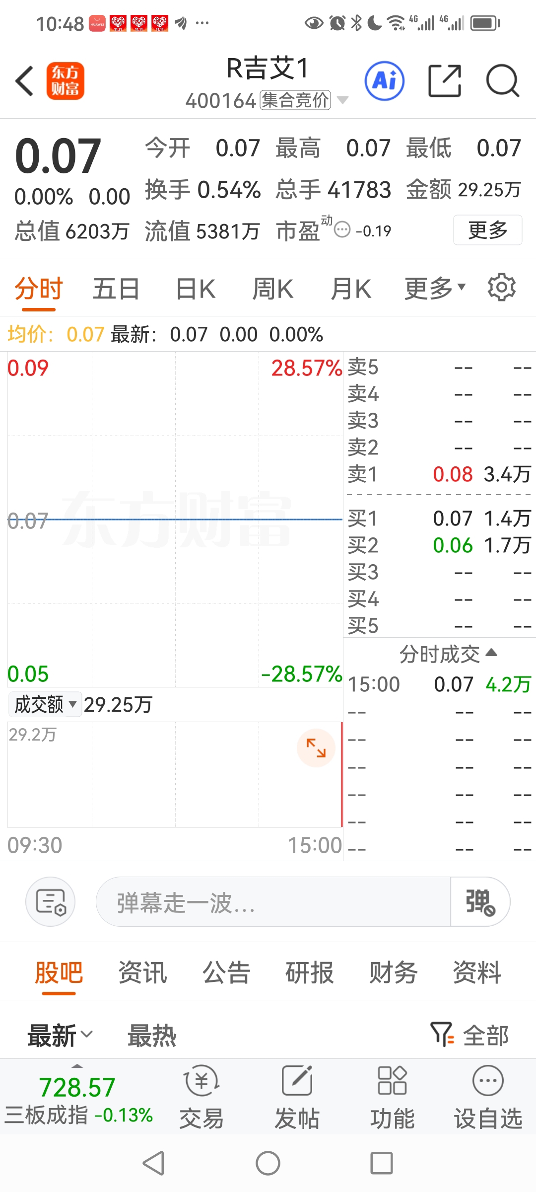 $R吉艾1(SZ400164)$ 周五的盘面不弱,以为会有涨停,4.2万手挂7分或6分卖竟然没打到跌停。实际上卖盘是指望涨停成交,7分委托插队,没想到还是7分成交。买一7分还有1.4万手,实际8分委买有4万手,比4.2万手少一点而已。