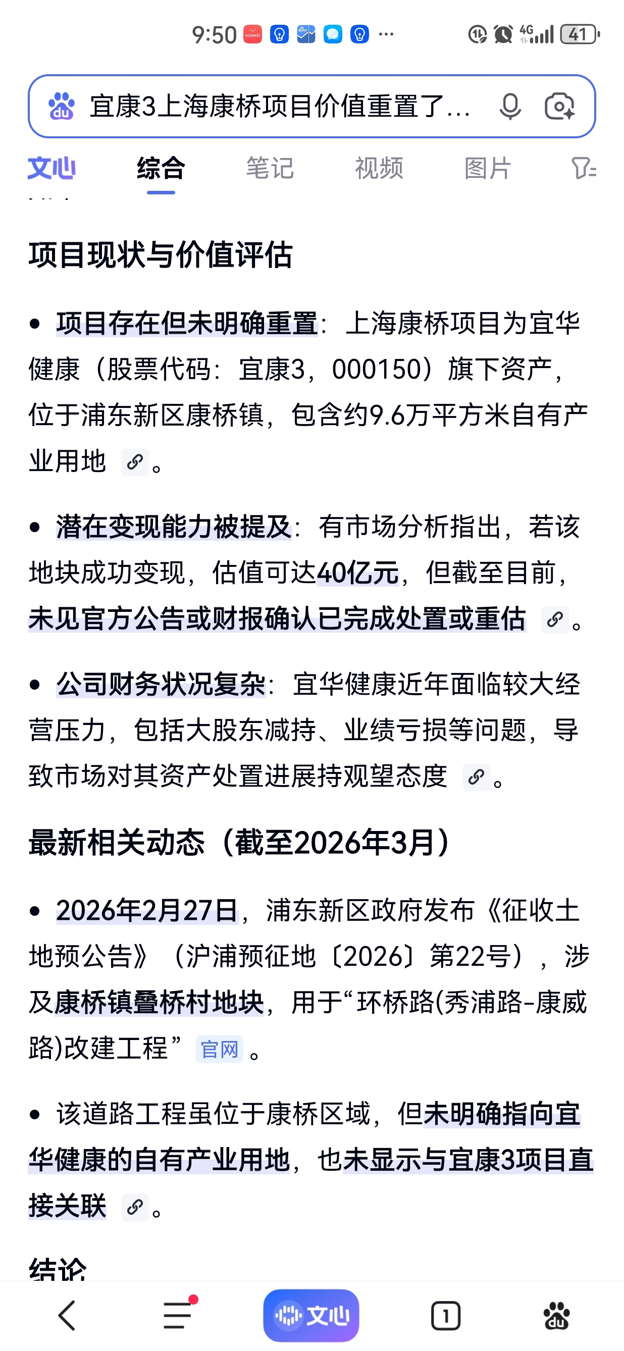 上海康桥项目9.6万平米不容易变现,即使被占用也不一定能值40亿元。这是宜康3面