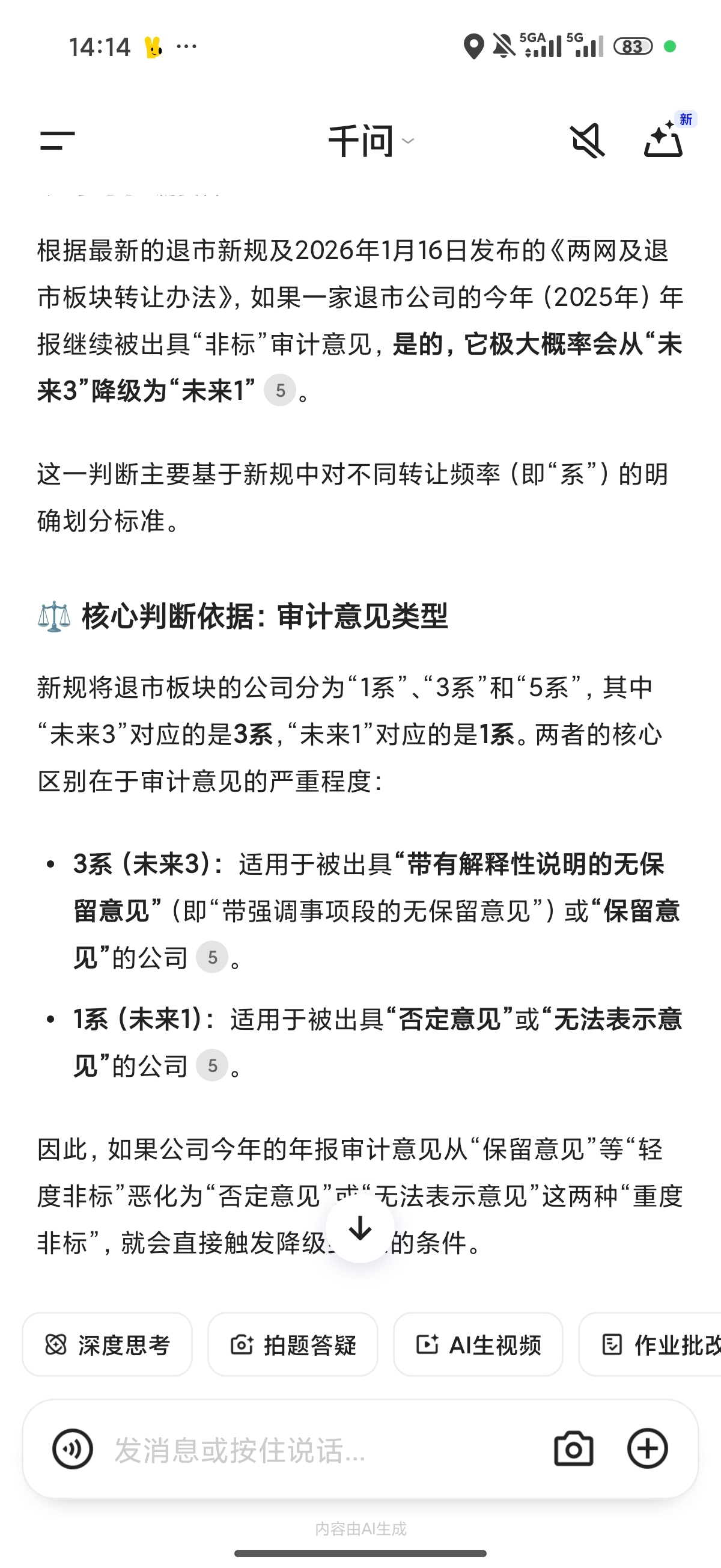 如果出具跟去年一样的审计报告,那么就有可能变1了。当然大概率是变1了,因为要出具