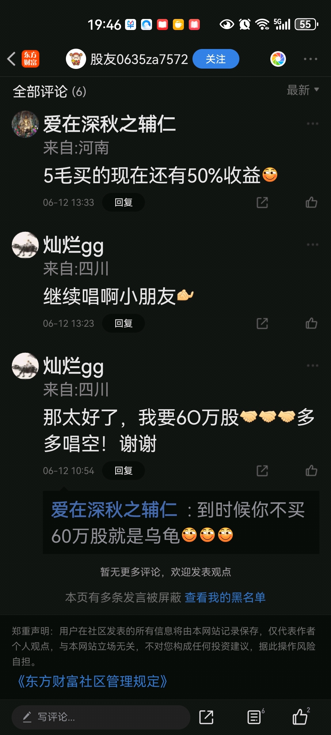 温馨提示: 1.根据《证券法》规定,禁止编造、传播虚假信息或者误导性信息,扰乱证券市场;2.用户在本社区发表的所有资料、言论等仅代表个人观点,与本网站立场无关,不对您构成任何投资建议。用户应基于自己的独立判断,自行决定证券投资并承担相应风险。《东方财富社区管理规定》