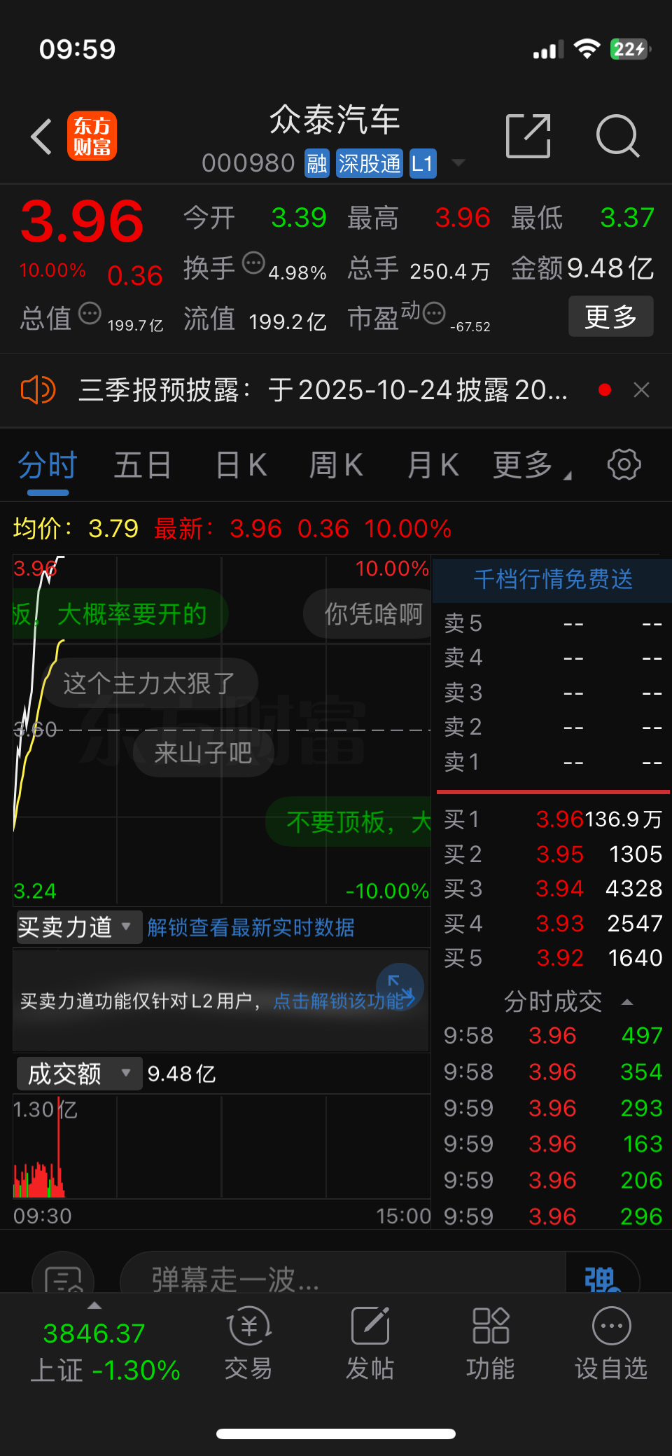 $R庞大1(SZ400171)$ 看看儿子众泰,又又又涨停了