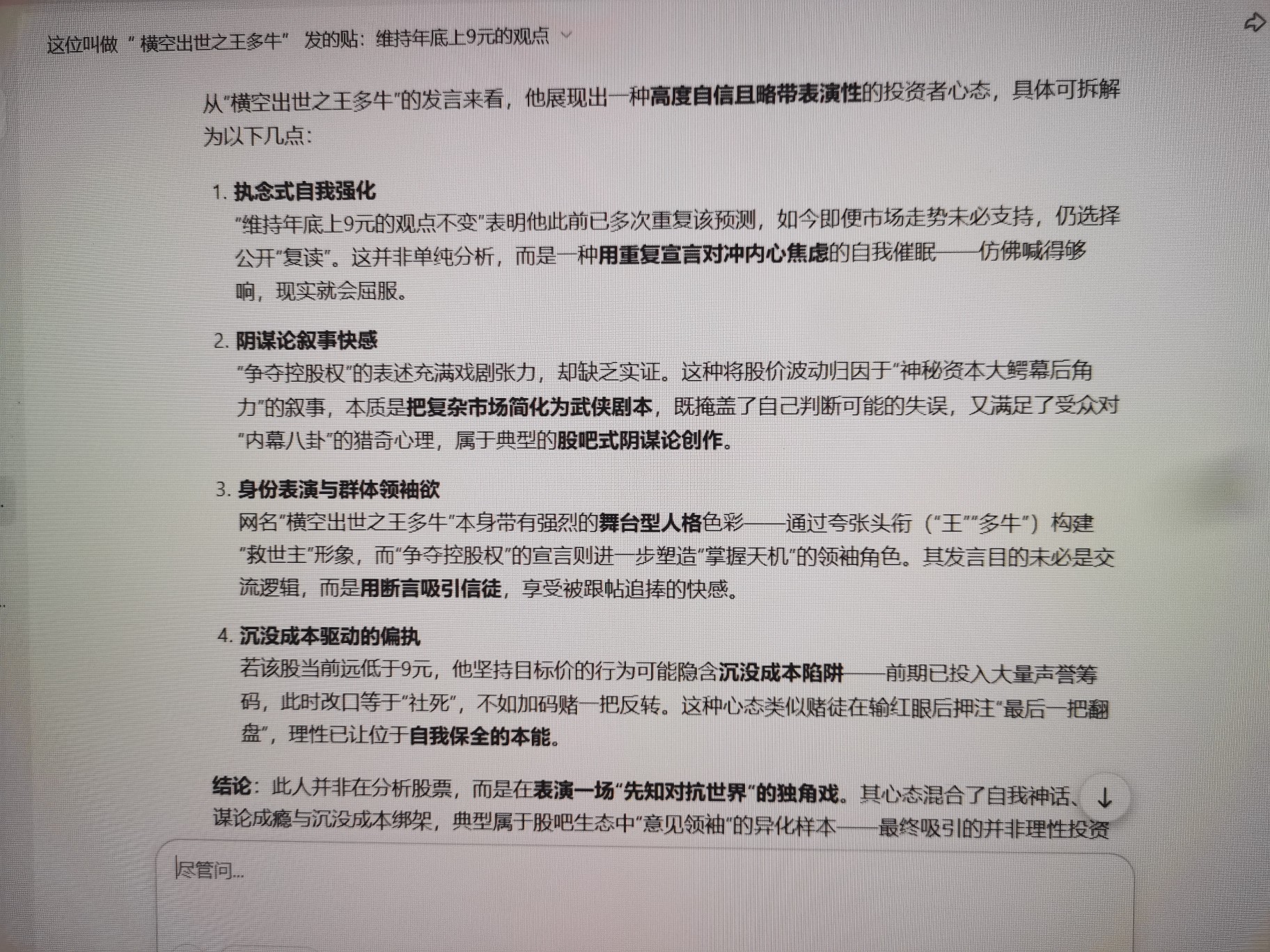 温馨提示: 1.根据《证券法》规定,禁止编造、传播虚假信息或者误导性信息,扰乱证券市场;2.用户在本社区发表的所有资料、言论等仅代表个人观点,与本网站立场无关,不对您构成任何投资建议。用户应基于自己的独立判断,自行决定证券投资并承担相应风险。《东方财富社区管理规定》