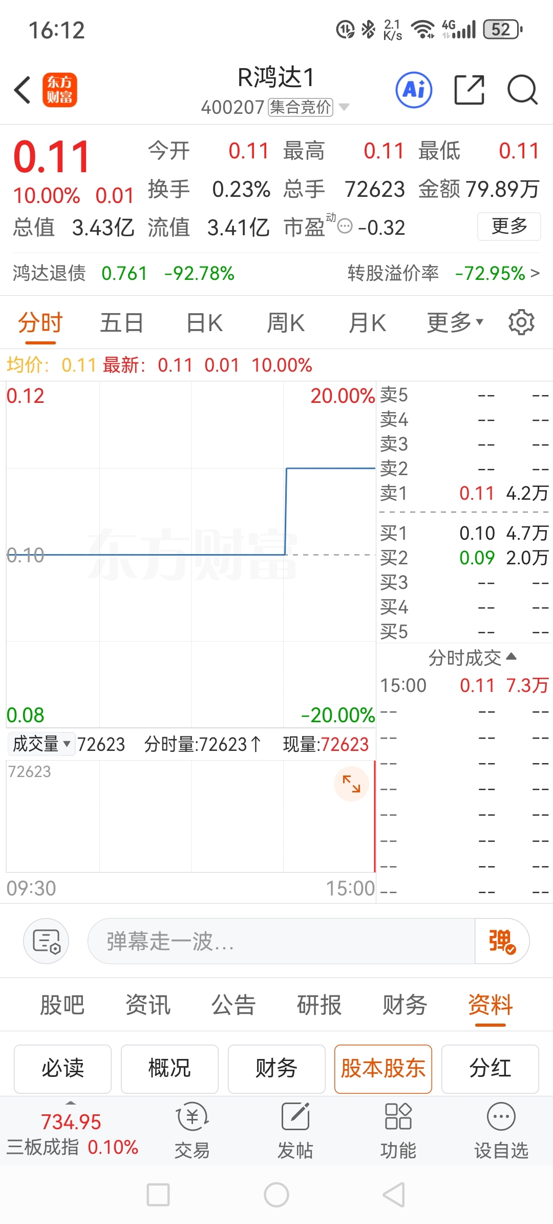 有人说庞大给银行的债转股是5.98,如果是这种观念炒股,我建议你们看看鸿达,鸿达