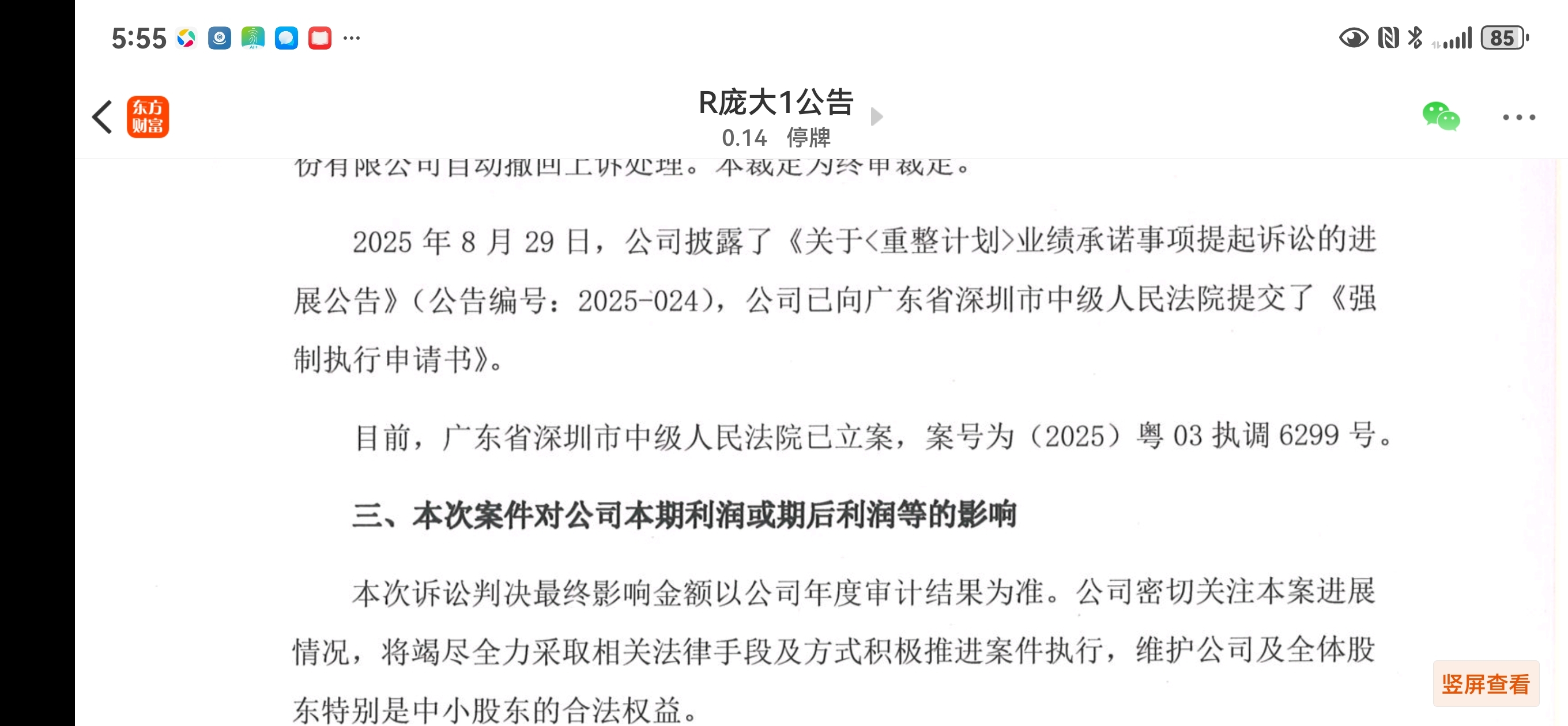 $R庞大1(SZ400171)$ 8月29日,公司向法院递交了强制执行申请书,并且深商等三家公司资产被法院冻结,保全37亿的资产,今天10月27日的公告就是本裁定立即执行!连起来看就是今日开始划拉资产到帐
