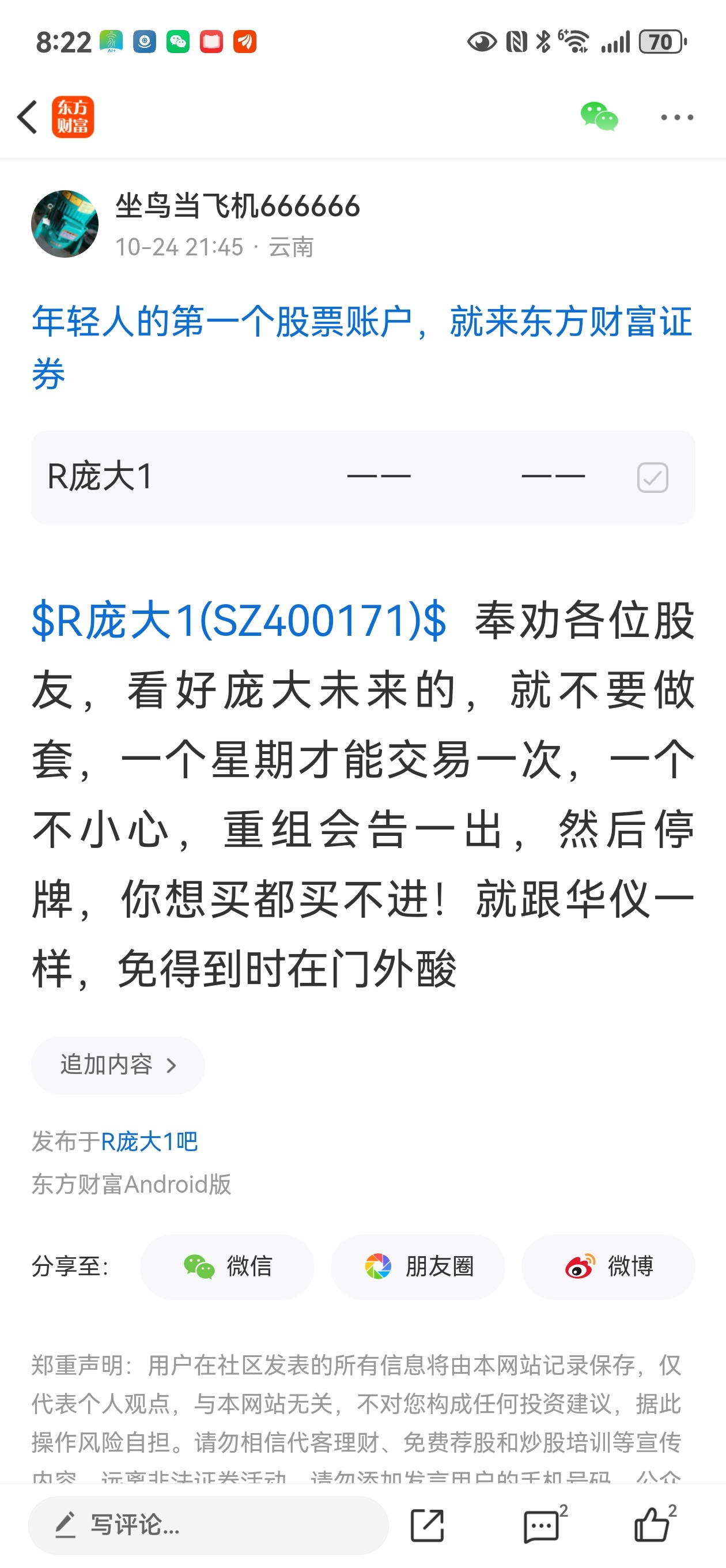 温馨提示: 1.根据《证券法》规定,禁止编造、传播虚假信息或者误导性信息,扰乱证券市场;2.用户在本社区发表的所有资料、言论等仅代表个人观点,与本网站立场无关,不对您构成任何投资建议。用户应基于自己的独立判断,自行决定证券投资并承担相应风险。《东方财富社区管理规定》