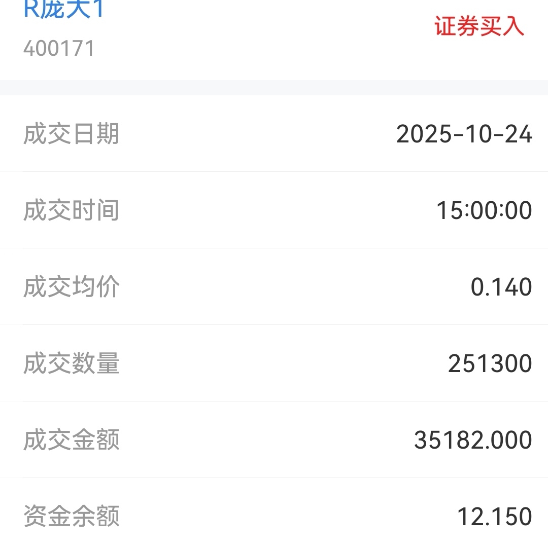 $R庞大1(SZ400171)$ 明天肯定0.15元,有点想卖的冲动。两千多元钱也是钱啊。