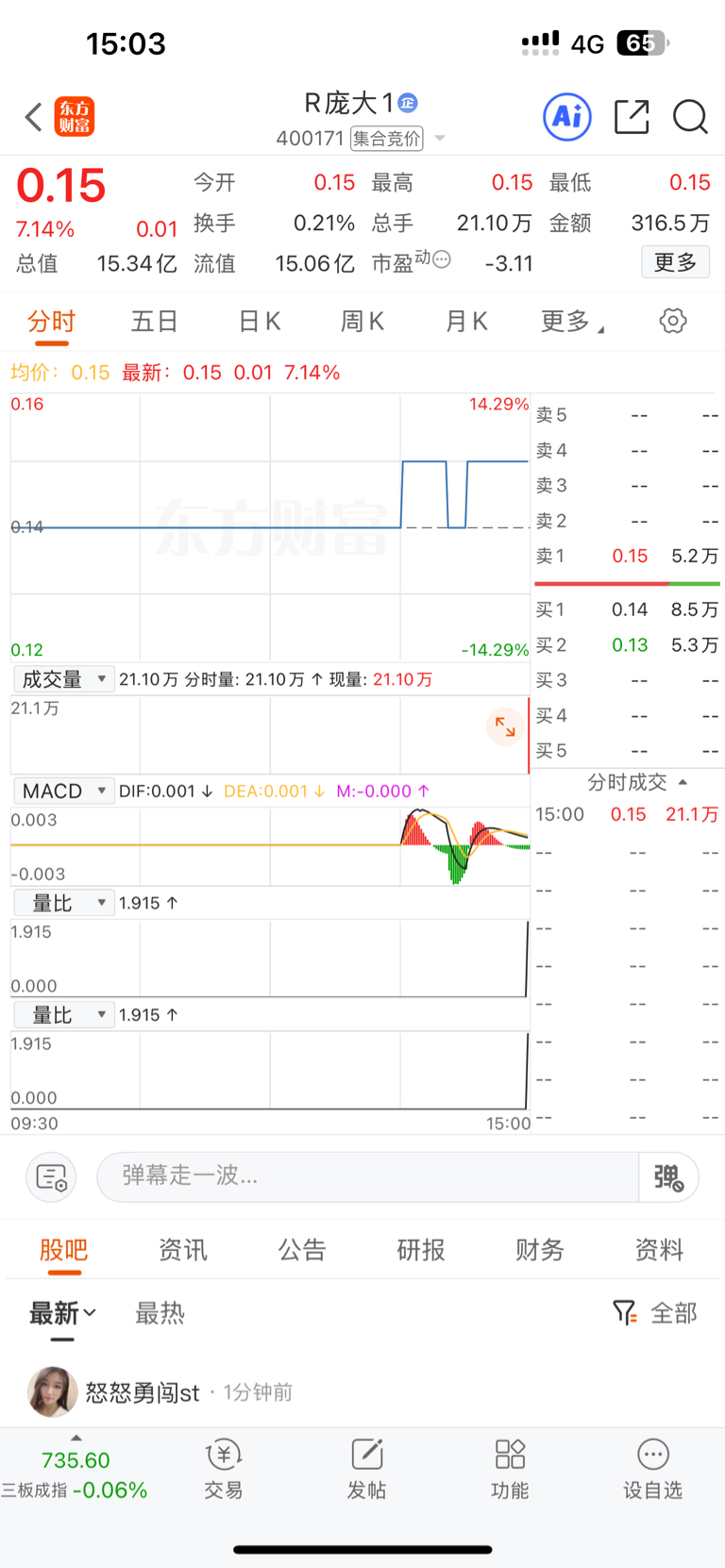 $R庞大1(SZ400171)$ 还有人买,害人不浅