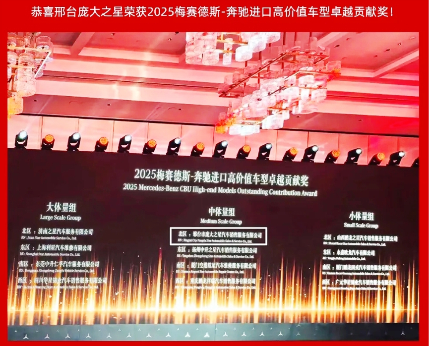 恭喜邢台庞大之星荣获2025年梅赛德斯奔驰进口高价车型卓越贡献奖