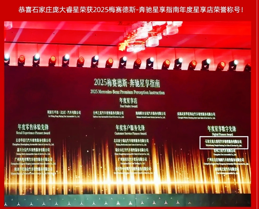 恭喜石家庄庞大睿星荣获梅赛德斯奔驰星享指南年度星享店容易称号