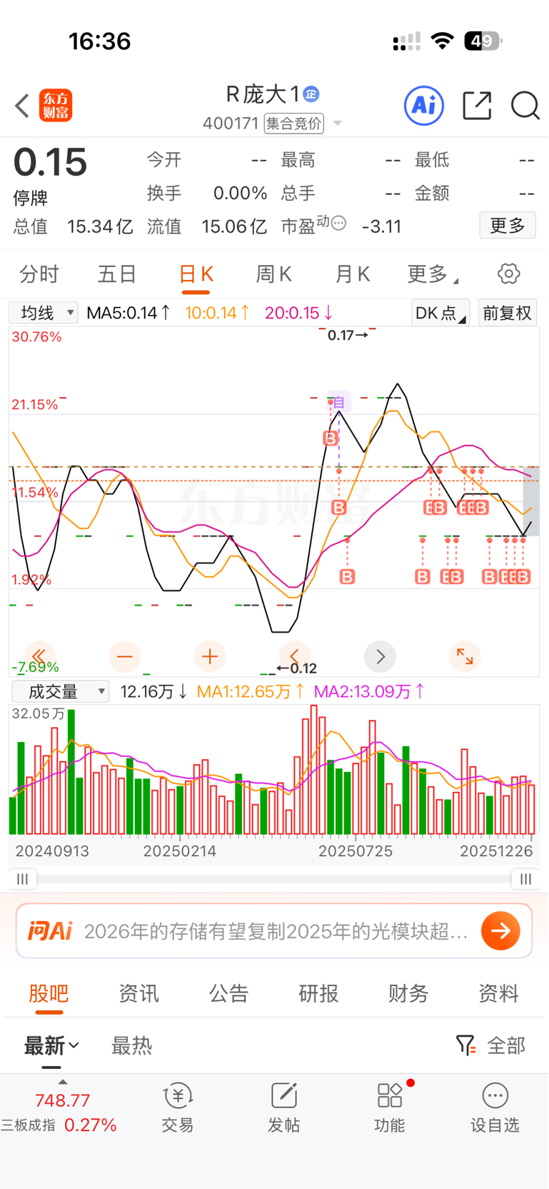 $R庞大1(SZ400171)$ 只买不卖,上个礼拜太忙了,没挂上