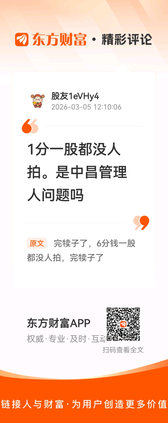 //@股友1eVHy4 :1分一股都没人拍。是中昌管理人问题吗