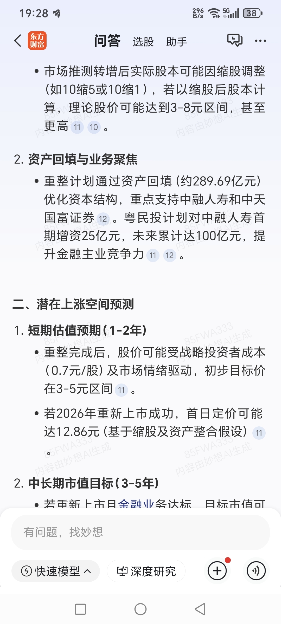 $中天3(SZ400174)$ 中天的股友们,发财了,发财了,苦苦的熬了都记不得几年了,15万股会不会有下面分析的那种可能性出现?哪一天真的回A了,会不会实现财务自由啊?