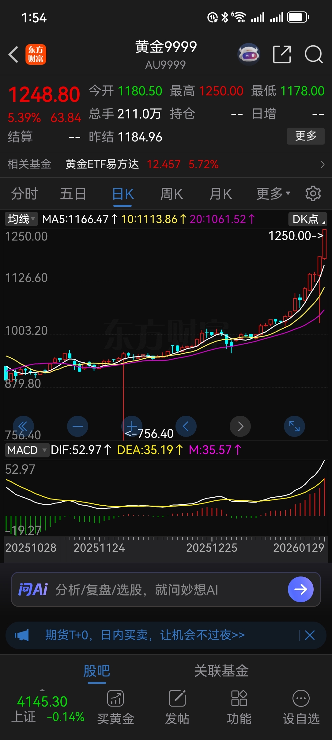 你们注意到黄金没?已经脱离价值,乱世黄金,盛世地产,1250元一克黄金已经不是普通人购买的能力了。