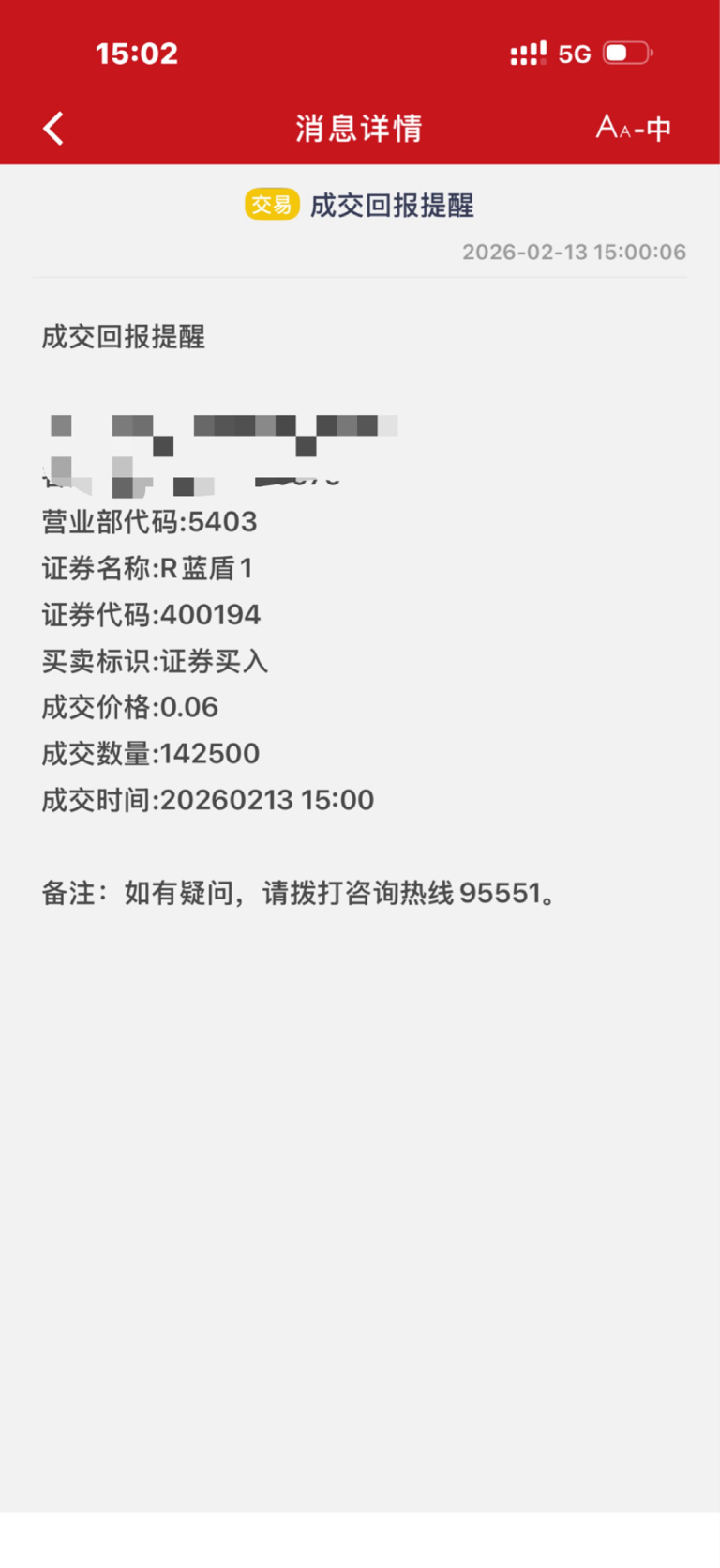 $R蓝盾1(SZ400194)$ 挂了两笔成交一笔