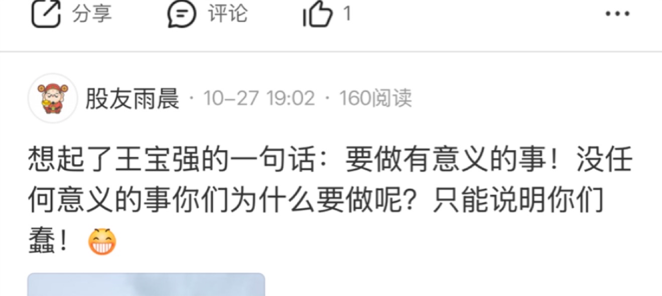 温馨提示: 1.根据《证券法》规定,禁止编造、传播虚假信息或者误导性信息,扰乱证券市场;2.用户在本社区发表的所有资料、言论等仅代表个人观点,与本网站立场无关,不对您构成任何投资建议。用户应基于自己的独立判断,自行决定证券投资并承担相应风险。《东方财富社区管理规定》