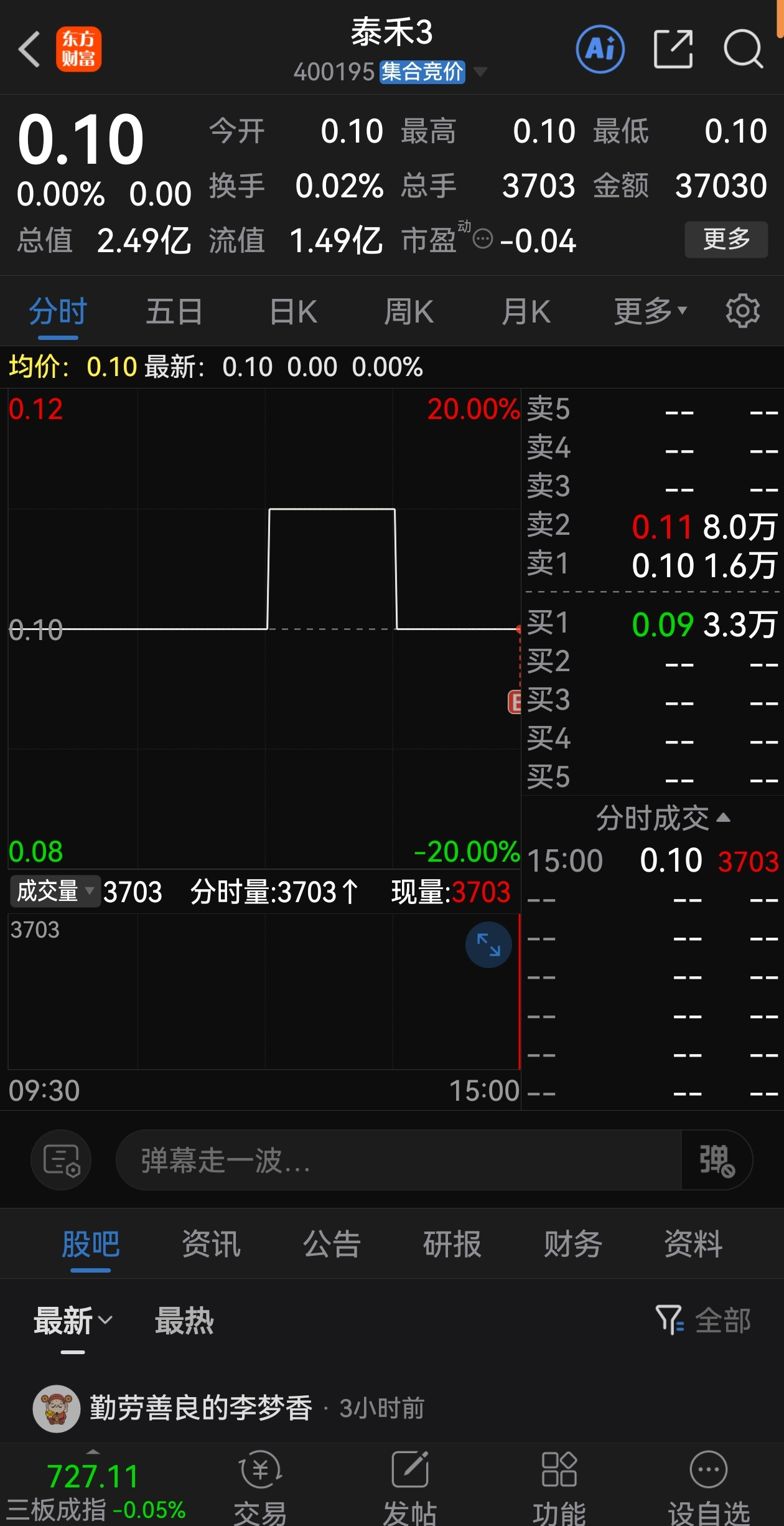 $泰禾3(SZ400195)$ 是不是我在撑着一毛钱的价格?