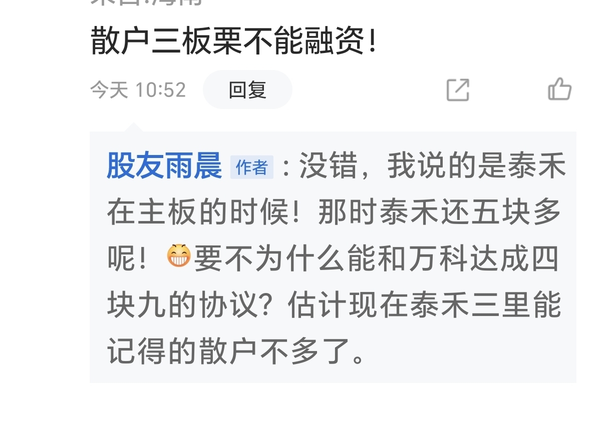$泰禾3(SZ400195)$ 这个雨晨大师是不是脑子有问题的人呀?现在泰禾都已经退市几年了还想着未退市的时候,你知不知道三版意义着什么?不知你是真的脑子有问题还是别人请来的托!醒醒吧!
