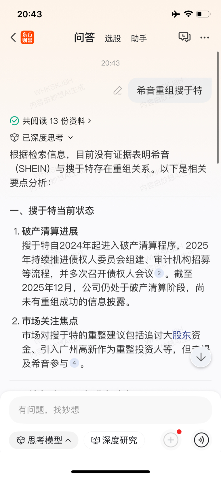 $R搜特1(SZ400198)$ 希音和搜于特都是假消息