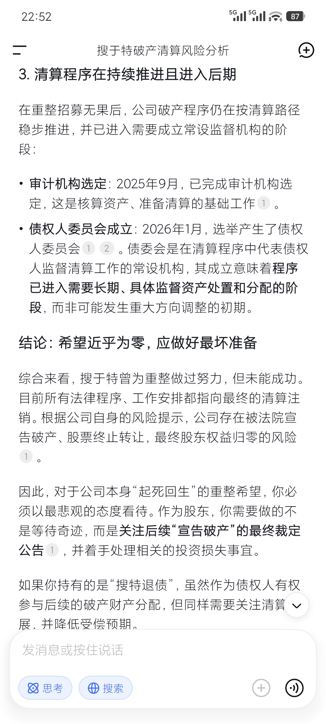 如果搜于特真的清零了我就卖征信赚钱,特别是农发行的全部贷出来,把房子车子都卖了,我买的是国家合法的投资项目,国资背景发行可转债的优质公司,不是期货更不是加密货币,我接受不了清零的结局。