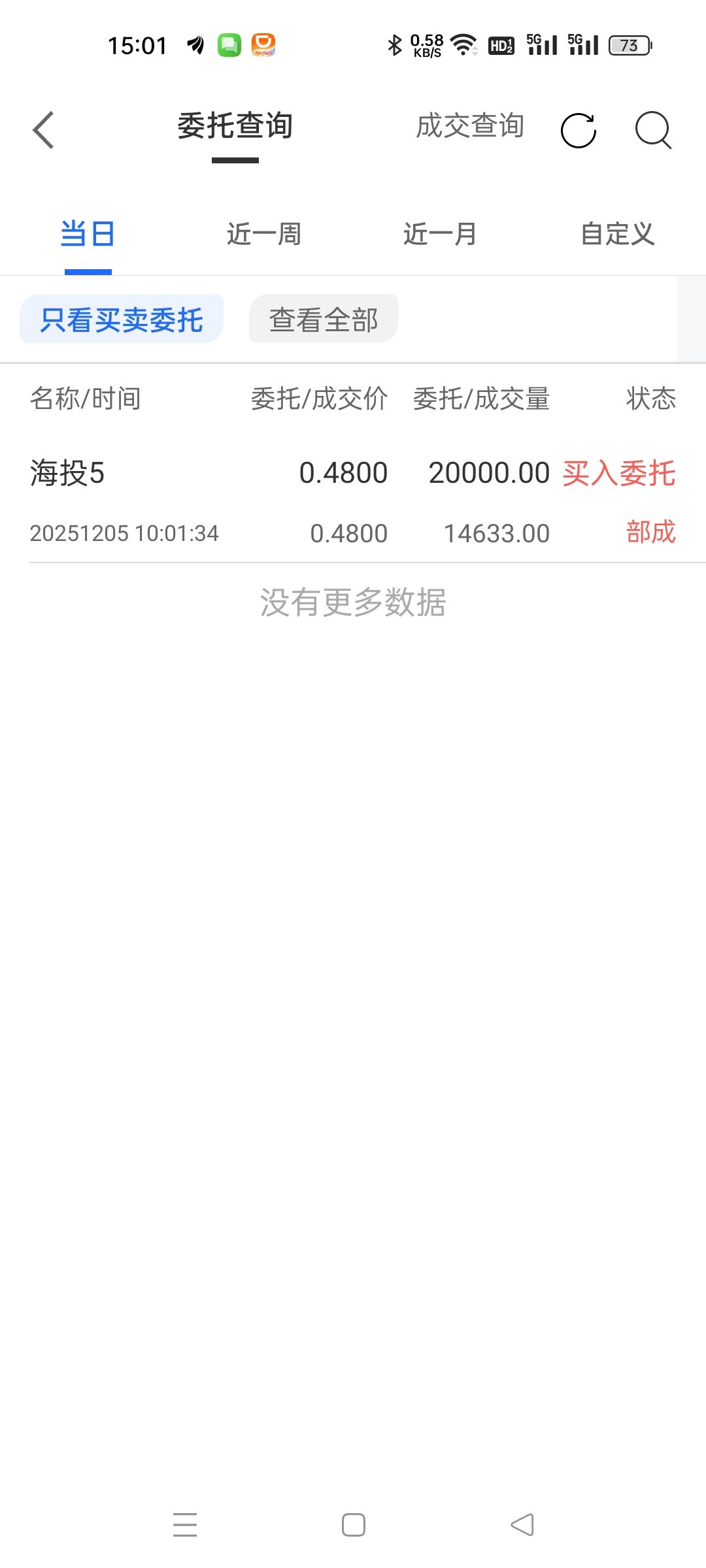 $海投5(SZ400201)$ 竟然是部成,中奖最后成交单