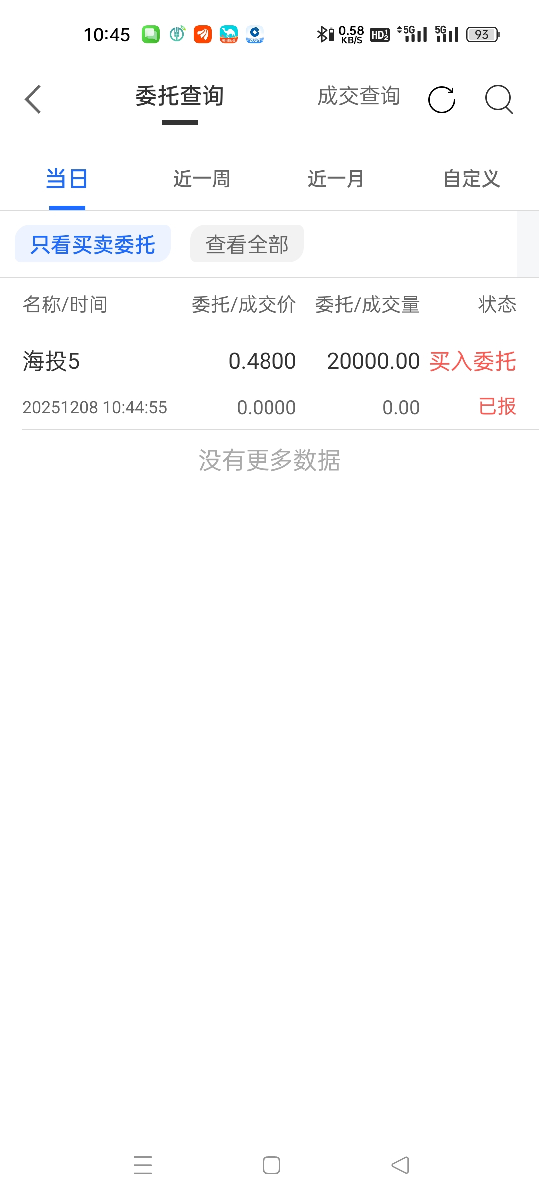 $海投5(SZ400201)$ 继续 捡漏每天不超0.48买入20000股到12月31止