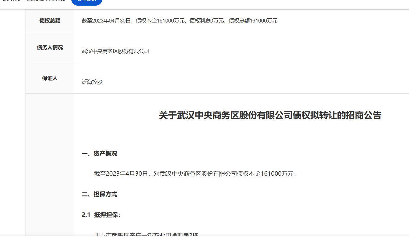 泛海控股又有一笔16.1亿的资产挂出去拍卖了,已有5人报名