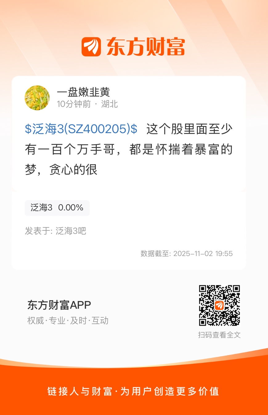 温馨提示: 1.根据《证券法》规定,禁止编造、传播虚假信息或者误导性信息,扰乱证券市场;2.用户在本社区发表的所有资料、言论等仅代表个人观点,与本网站立场无关,不对您构成任何投资建议。用户应基于自己的独立判断,自行决定证券投资并承担相应风险。《东方财富社区管理规定》