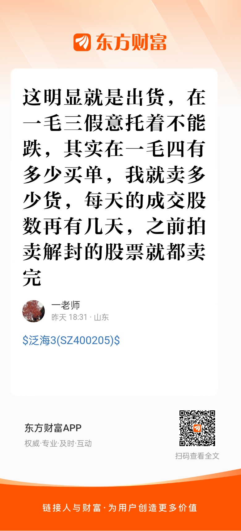 温馨提示: 1.根据《证券法》规定,禁止编造、传播虚假信息或者误导性信息,扰乱证券市场;2.用户在本社区发表的所有资料、言论等仅代表个人观点,与本网站立场无关,不对您构成任何投资建议。用户应基于自己的独立判断,自行决定证券投资并承担相应风险。《东方财富社区管理规定》