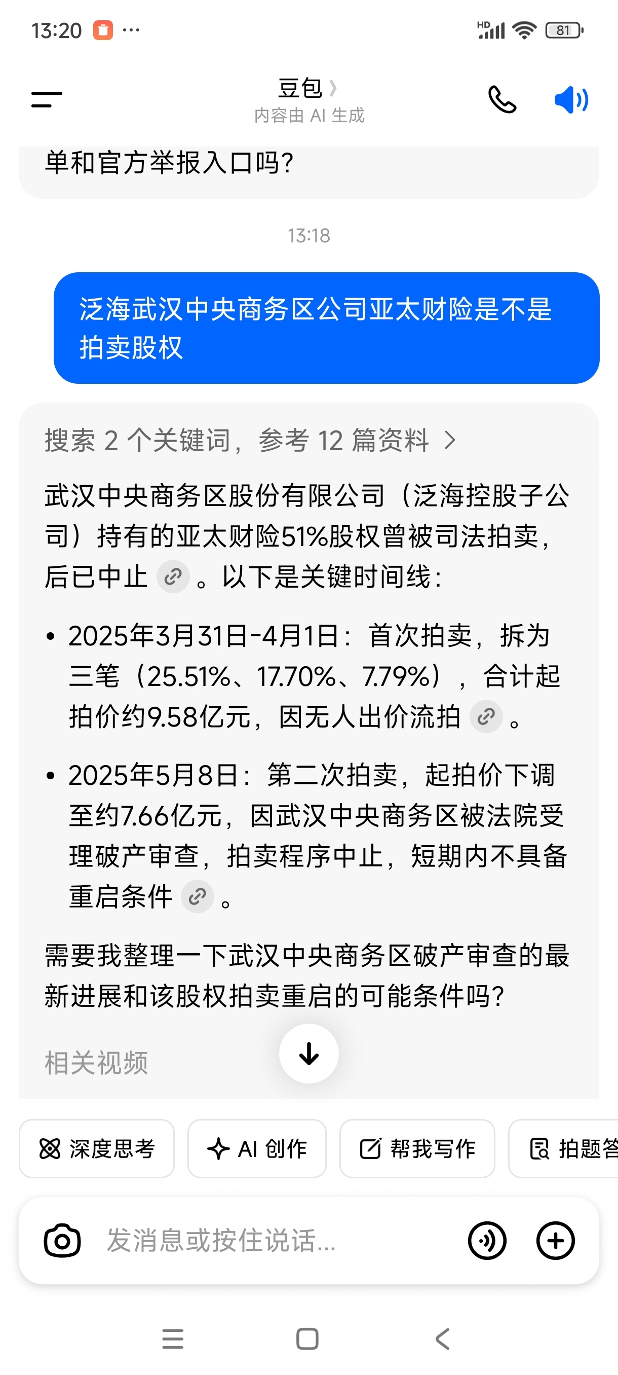 自己问豆包。都破产审查了。韭菜还天天唱重组。茅台喝多了吧。