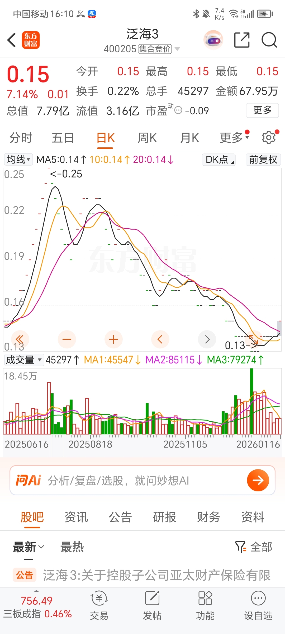 $泛海3(SZ400205)$ 今天建仓买了一手