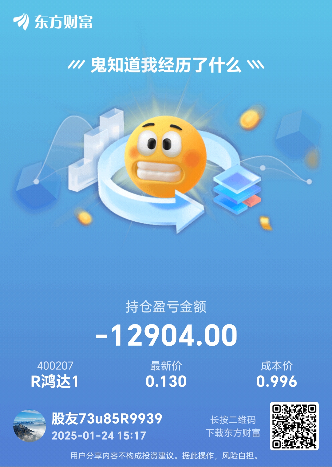 温馨提示: 1.根据《证券法》规定,禁止编造、传播虚假信息或者误导性信息,扰乱证券市场;2.用户在本社区发表的所有资料、言论等仅代表个人观点,与本网站立场无关,不对您构成任何投资建议。用户应基于自己的独立判断,自行决定证券投资并承担相应风险。《东方财富社区管理规定》