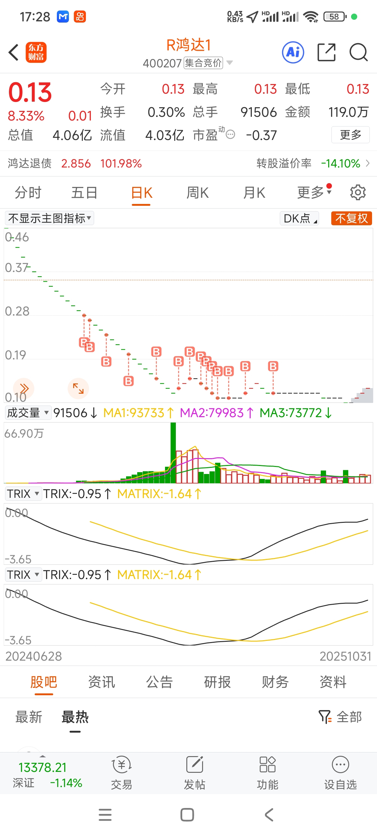 $R鸿达1(SZ400207)$ 怎么办?兄弟们。一股不卖,就是不卖。我想看一下最后底牌是什么?