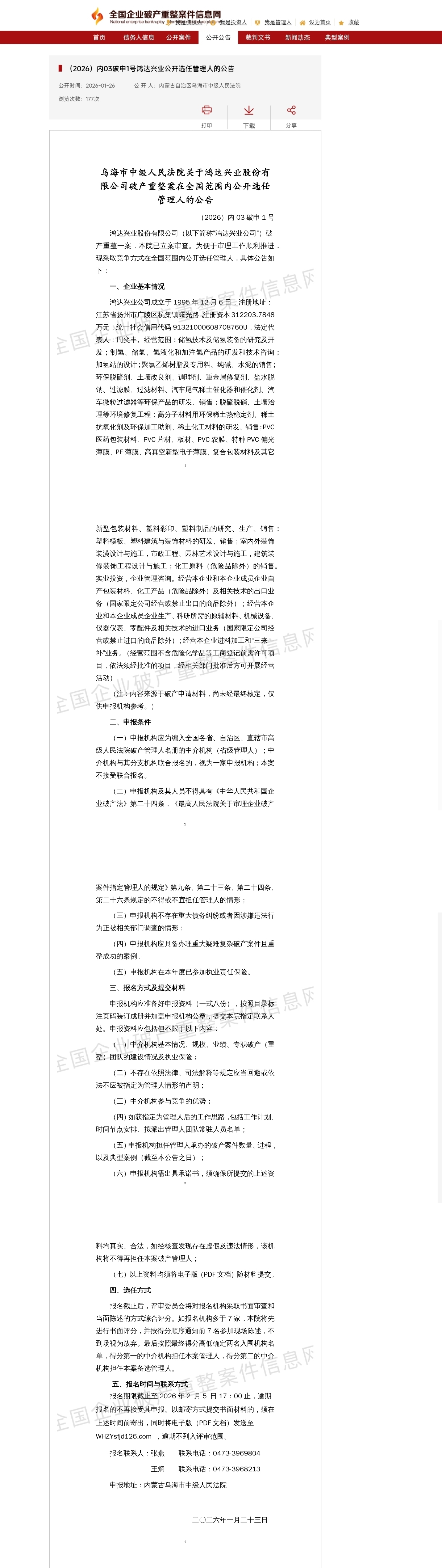 $R鸿达1(SZ400207)$ 法院开始公开招募管理人了