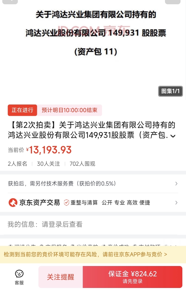 $R鸿达1(SZ400207)$ 1一10资产包0人报名