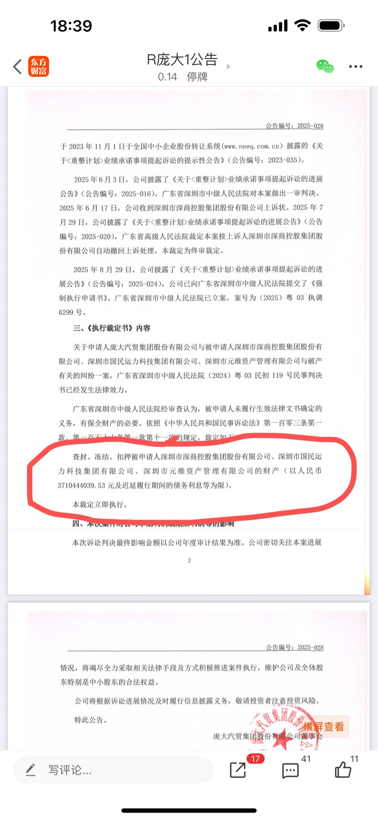 $金鹤5(SZ400208)$ 老李啊,你也学学人家庞大1,走法律程序吧,三家公司冻结37亿,两年了金鹤连个屁声都没有,