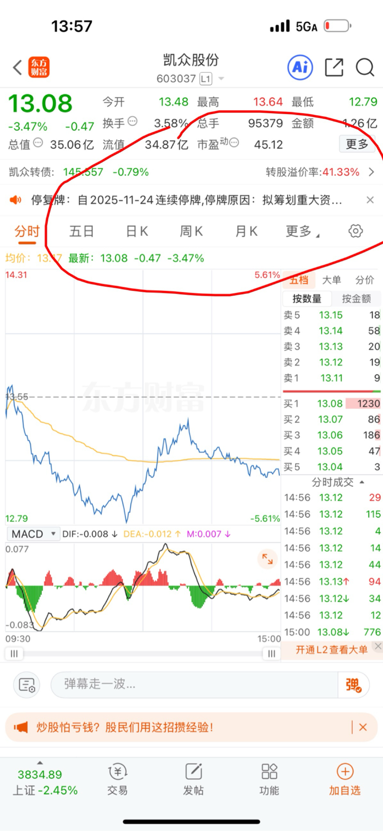 $金鹤5(SZ400208)$ 下个星期好了,全仓买的凯众停牌了,一个星期卖不出来,打算卖掉一些补点金鹤5的,没法操作了