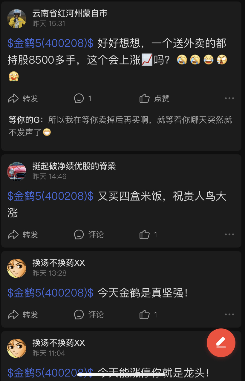 $金鹤5(SZ400208)$ 去那边和送外卖的聊天去了