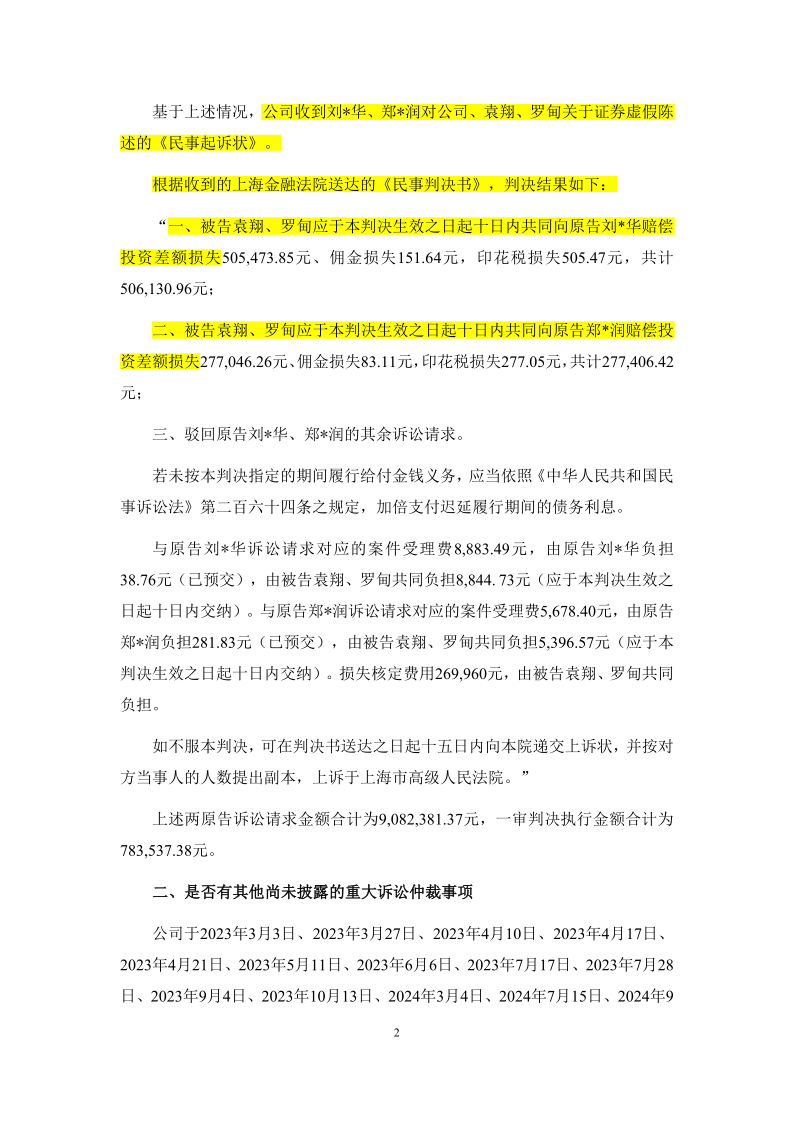 参考现在已有的民事赔偿案例,公开发布虚假或误导性的承诺对投资者损失的影响即使按照10%(最低标准)来计算,本案给全体投资者造成的损失也在2亿元以上。(详见:上海金融法院于2025年4月25日在其微信公众号上公开的案例及证据6:《金力泰:关于投资者诉讼事项的进展公告》,上海金力泰化工股份有限公司(股票代码:300225)相关主体因不履行其公开披露的承诺,法院认定其违法行为构成虚假陈述行为且具有重大性,该违法行为与投资者的损失具有直接因果关系,法院最终按照投资者主张金额的10%左右支持了其诉讼请求。)