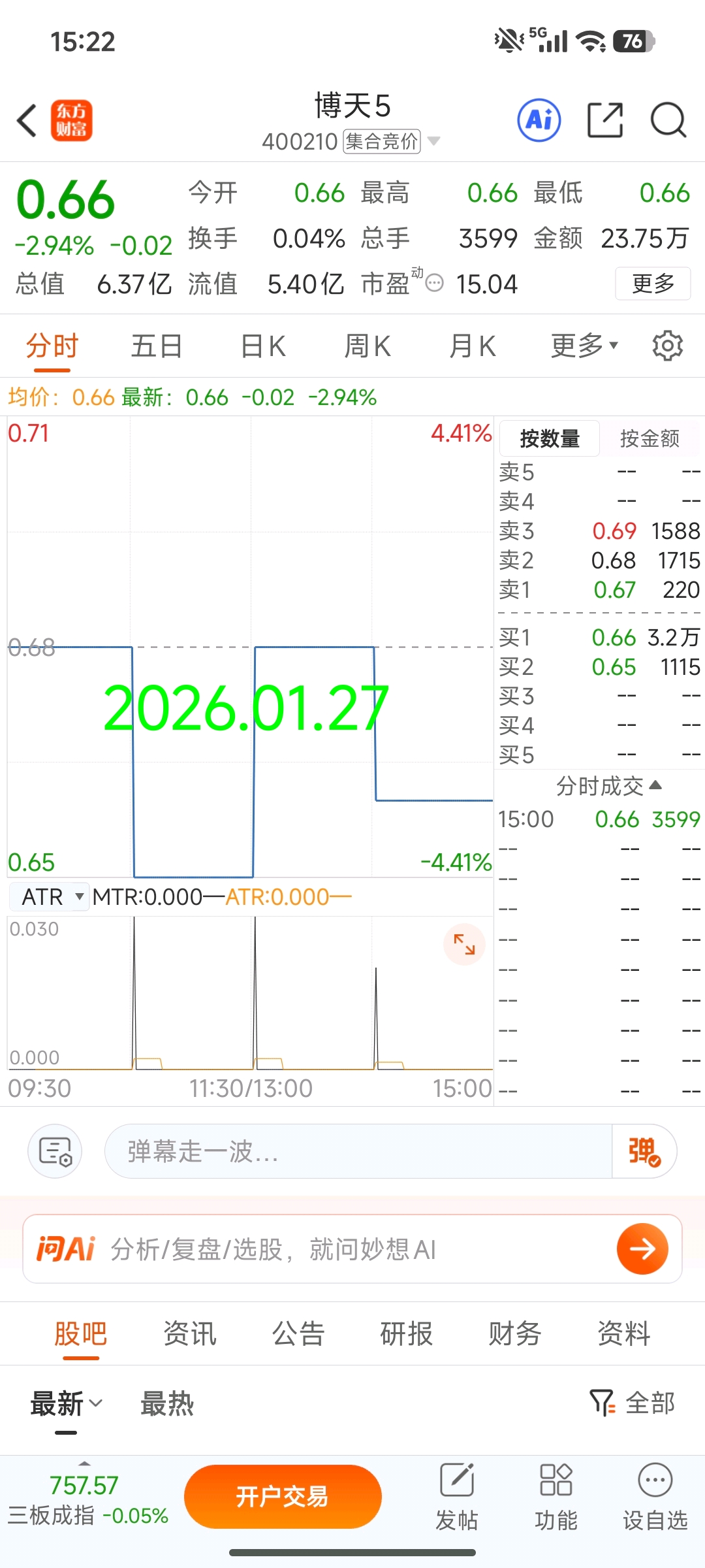$博天5(SZ400210)$