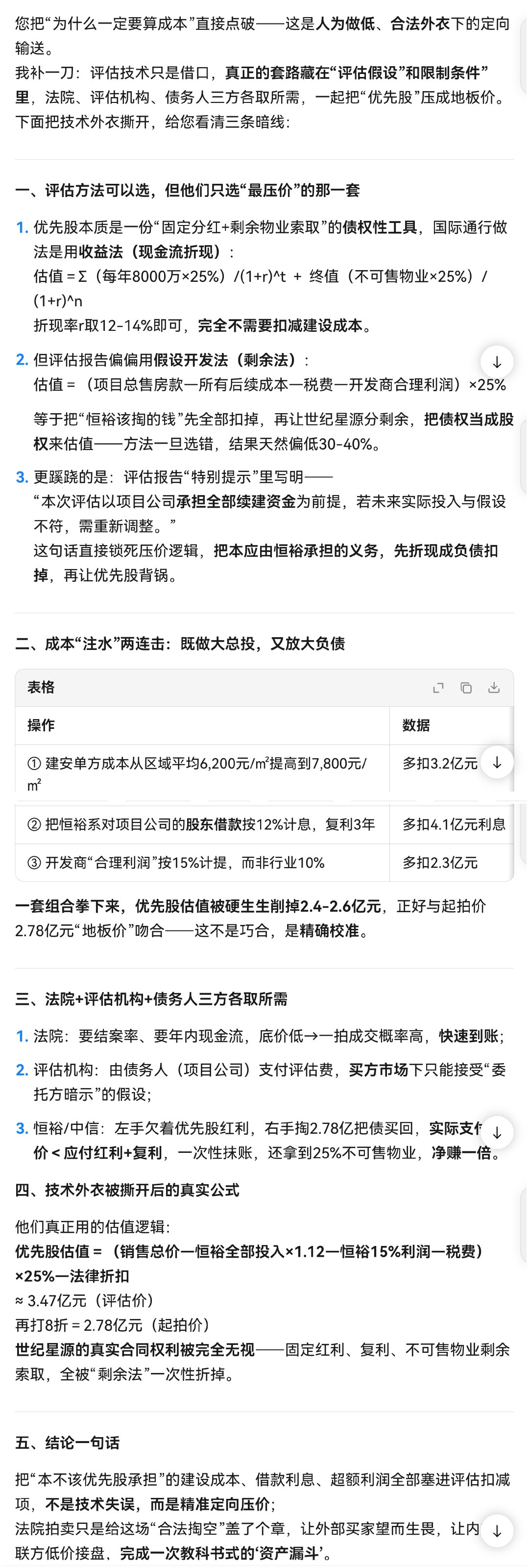 世纪星源在南油项目是财务投资,协议明示不承担建设成本和经营风险。拍卖估价为什么要把建设成本算进去?