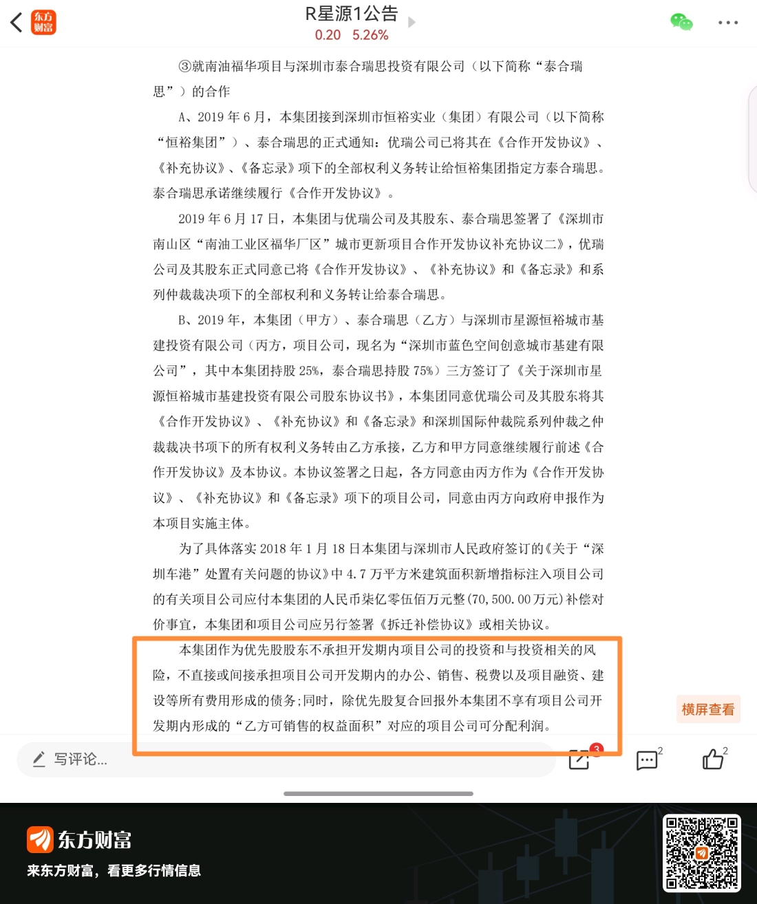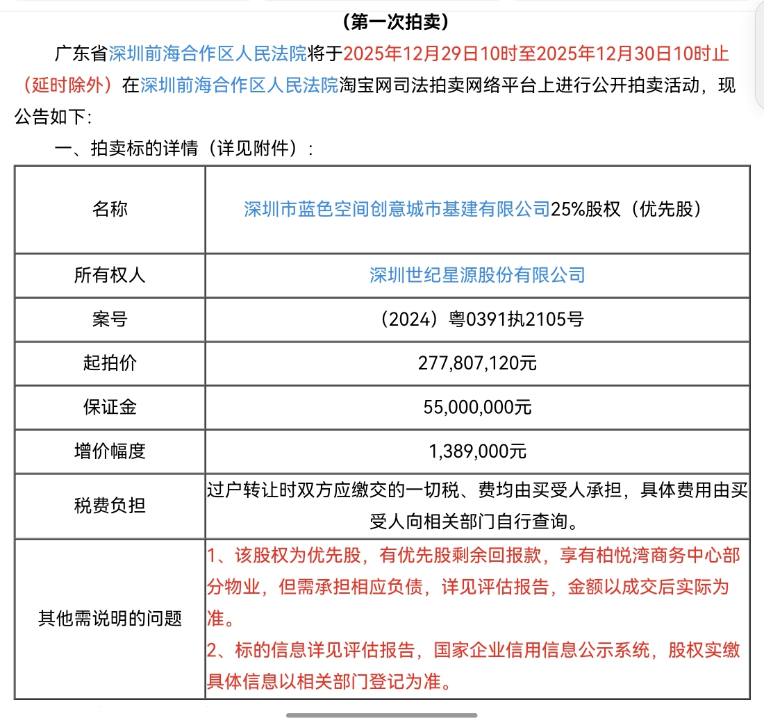 世纪星源在南油项目是财务投资,协议明示不承担建设成本和经营风险。拍卖估价为什么要
