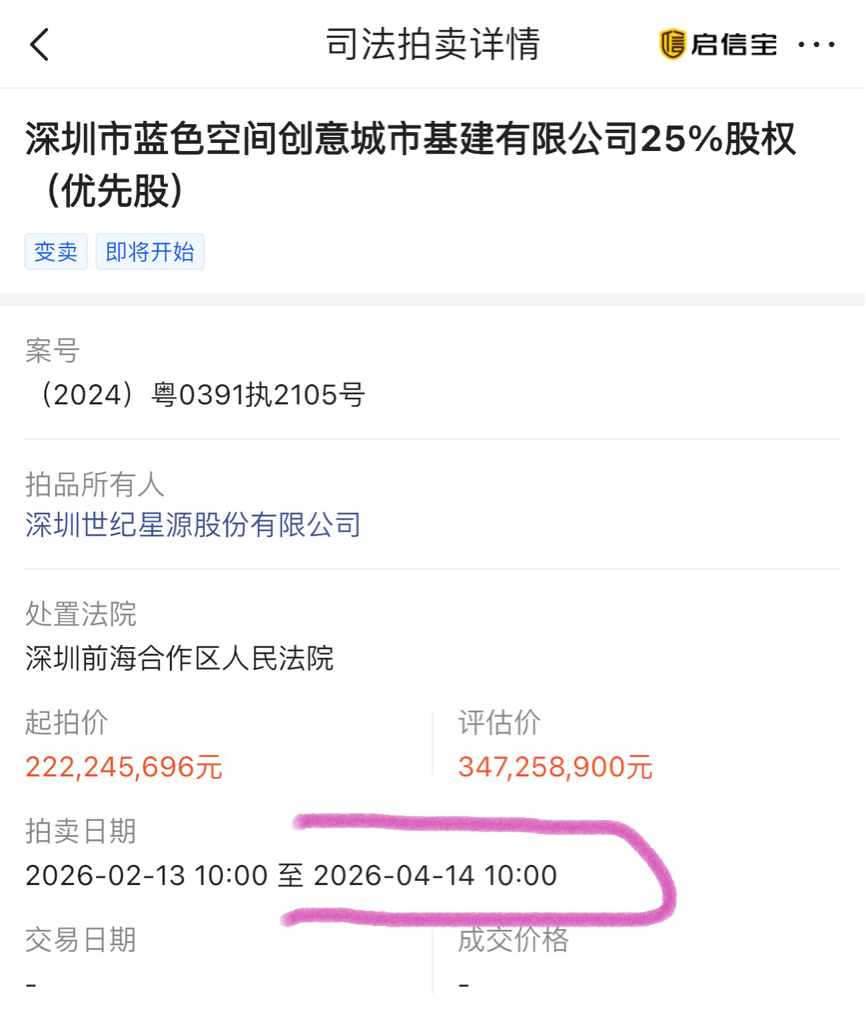 $R星源1(SZ400211)$ 2月13—4月14日,连续拍卖,直到卖出为止