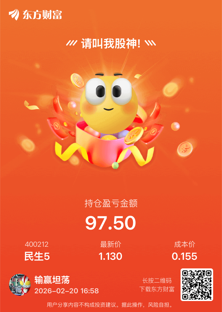 温馨提示: 1.根据《证券法》规定,禁止编造、传播虚假信息或者误导性信息,扰乱证券市场;2.用户在本社区发表的所有资料、言论等仅代表个人观点,与本网站立场无关,不对您构成任何投资建议。用户应基于自己的独立判断,自行决定证券投资并承担相应风险。《东方财富社区管理规定》