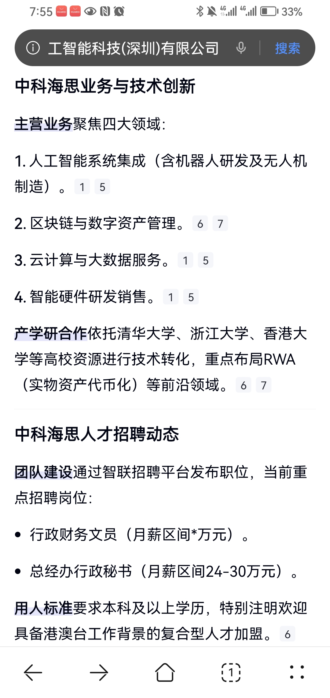 $中资5(SZ400216)$ 查了下中科海思人工智能深圳有限公司业务进展,业务范围把人工智能、区块链、大数据、机器人、RWN代币化、无人机这些热门东西都囊括了,看起来好nb,就是半年多了,没什么进展