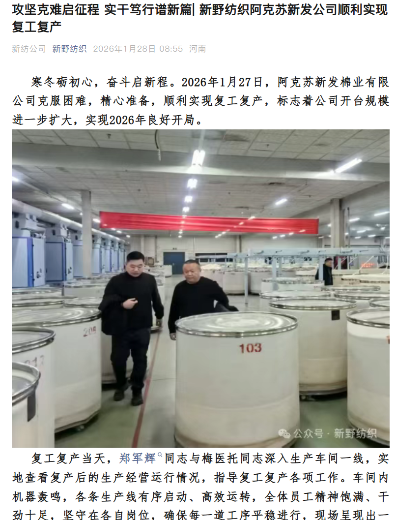 新疆公司复工复产了,2026年好兆头,接下来该重整了