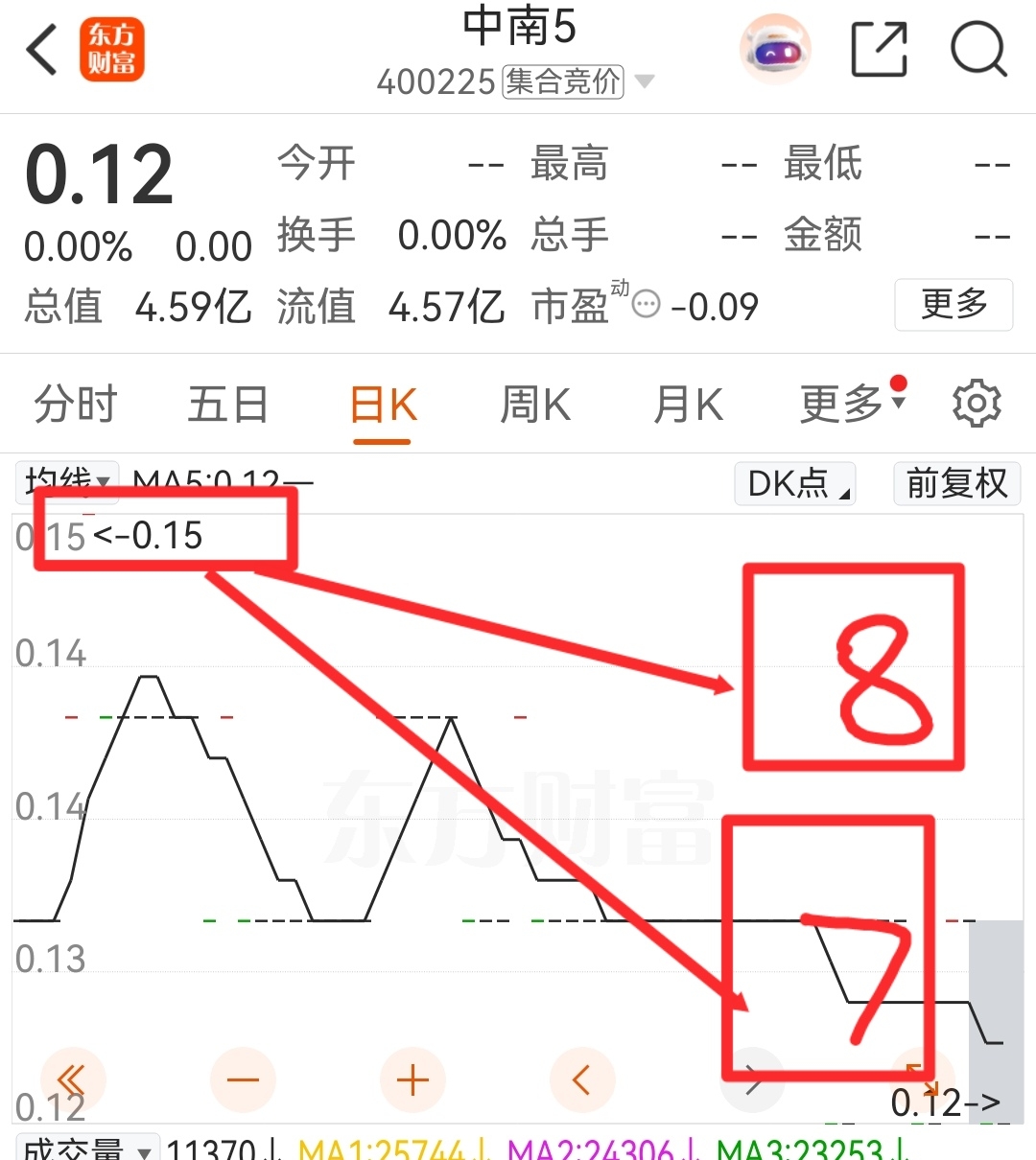 $中南5(SZ400225)$ 根据最高价15分,未来底部应该是在7分和8分之间产生。